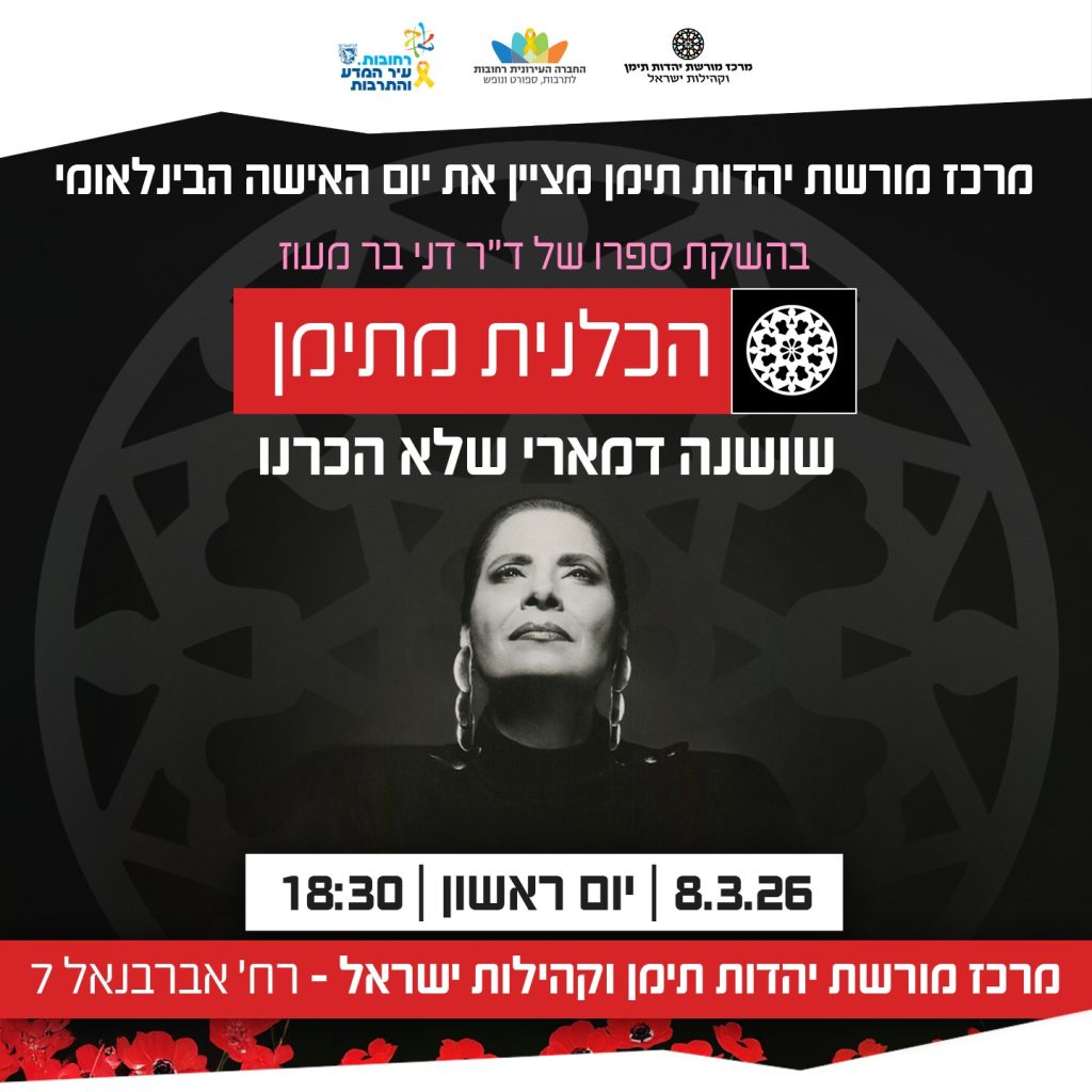 לציון יום האישה הבינלאומי מרכז מורשת יהדות תימן וקהילות ישראל, שמח להזמינכם להשקתו של הספר:
